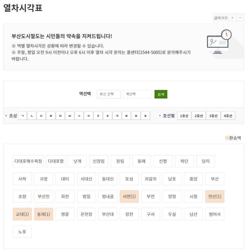 부산 지하철 노선도 검색 시간표