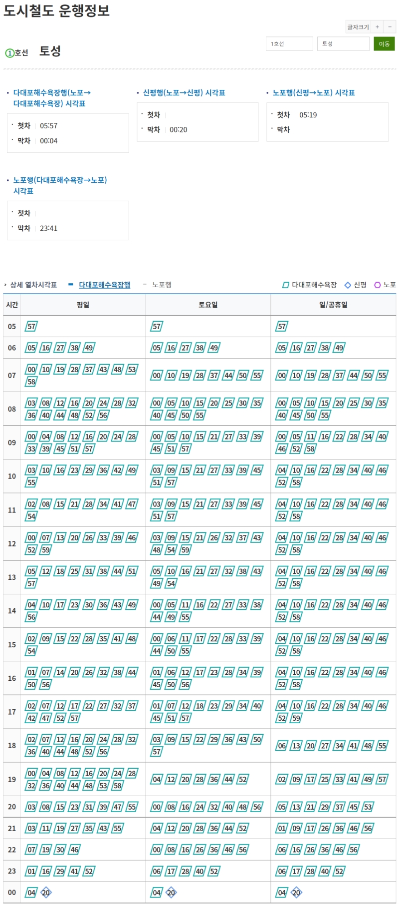 가장 많이 이용하는 1호선을 기준으로 역들을 살펴보면 다대포해수욕장부터 노포역까지 모든 정거장이 버튼 형태로 나열되어 있어요. 저는 이번에 토성역을 선택해 봤는데 환승역은 별도의 색상으로 강조되어 있어 눈에 확 띄더라고요. 내가 자주 가는 역을 미리 눈여겨 봐두면 나중에 더 신속하게 정보를 확인할 수 있을 거예요.