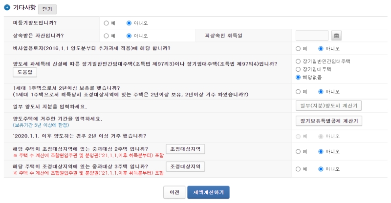 추가로 확인해야 할 기타사항들도 하나씩 체크해 나가는 과정이 필요해요. 1세대 1주택 비과세 혜택을 받을 수 있는지나 실제 거주한 기간이 얼마나 되는지 등을 '예' 또는 '아니오'로 선택하면 돼요. 장기보유 특별공제 같은 혜택도 여기서 결정되니 본인에게 유리한 조건들을 빠짐없이 확인하는 것이 핵심이에요.