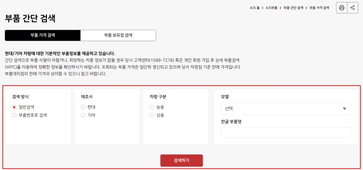 현대모비스 부품 검색 조회