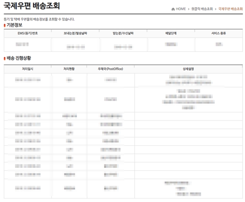 우체국 국제택배 배송조회
