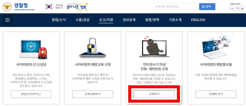 조회를 하려고 하면 어떤 정보를 넣어야 할지 선택하는 창이 나오는데 저는 보통 연락처를 먼저 확인하는 편이에요. 전화번호나 계좌번호 중 하나를 고르고 빈칸에 번호를 입력한 뒤 돋보기 모양을 누르면 시스템이 작동하기 시작해요. 경찰에 접수된 자료들과 대조해서 일치하는 정보가 있는지 꼼꼼하게 살펴보는 과정이라 아주 든든하답니다.