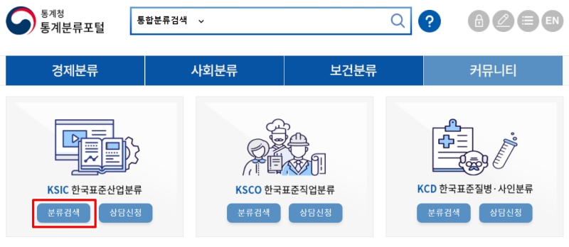 먼저 우리나라 산업의 모든 업종을 표준화하여 분류해놓은 공식적인 코드를 찾아볼게요. 이 방법은 내 사업의 정체성을 명확히 할 때 유용해요. 인터넷 검색창을 이용해 '통계분류포털' 홈페이지에 접속하면, 메인 화면에서 'KSIC 한국표준산업분류'라는 항목을 쉽게 찾을 수 있습니다. 여기서 '분류검색' 버튼을 눌러주시면 첫 단계가 시작됩니다.
