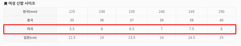 신발사이즈 미국 조견표