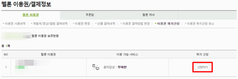 1. 예전에는 음악 스트리밍 서비스가 많지 않아서 멜론을 이용하는 분들이 많았습니다. 저도 자연스럽게 멜론을 선택했었는데요. 하지만 지금은 다양한 서비스가 나오면서 어떤 것이 더 편리하고 가격 면에서도 합리적인지 비교해보게 됩니다. 그래서 멜론을 더 이상 이용하지 않기로 했다면 우선 멜론 홈페이지에 들어가 로그인한 후 내 정보에서 사용 중인 이용권을 확인해야 합니다.