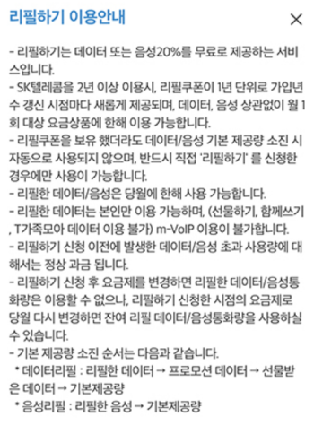 skt 데이터 리필쿠폰 선물 사용