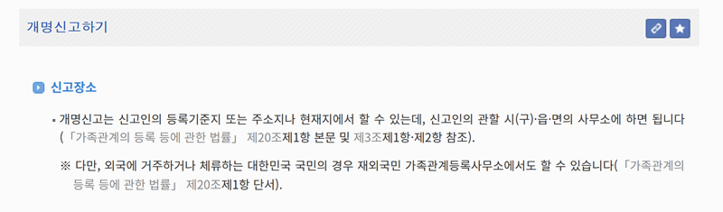 5. 개명 신고는 본인의 등록기준지나 주소지 또는 현재 거주하는 지역에서 할 수 있습니다. 신고는 해당 지역의 시청, 구청, 읍·면사무소에서 가능하며 가까운 행정복지센터에서도 안내를 받을 수 있습니다. 해외에 거주하거나 체류 중인 대한민국 국민의 경우 재외국민 가족관계등록사무소를 통해 개명 신고를 진행할 수도 있습니다.
