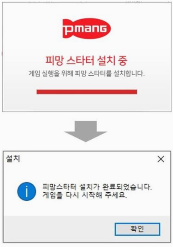 4. 피망 신형 맞고를 설치하려면 먼저 피망 스타터가 필요합니다. 스타터 설치가 끝난 후 다시 게임시작을 눌러주시면 됩니다.