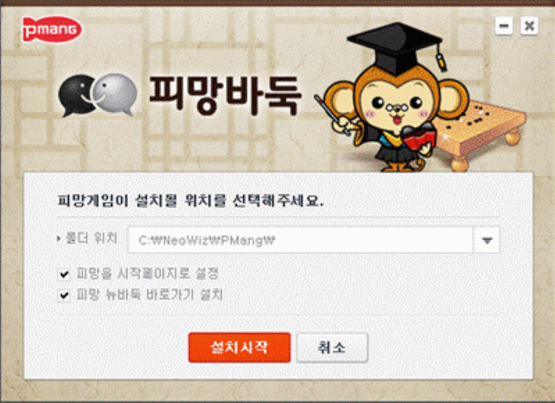 5. 아직 바둑 게임이 설치되지 않은 경우 자동으로 설치 화면이 나타납니다. 설치 시작 을 누르면 프로그램이 파일이 내려받아지고 실행됩니다. 별다른 과정 없이 간편하게 설치할 수 있으며 완료되면 곧바로 시작할 수 있습니다.