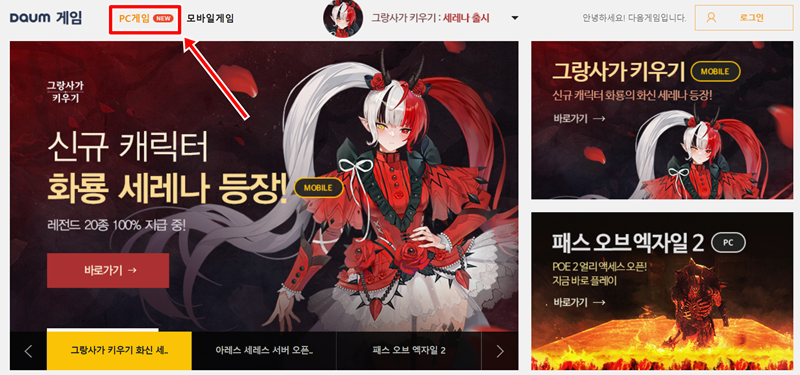 1. 다양한 온라인 게임을 한곳에서 즐길 수 있는 공간입니다. 바둑 같은 보드게임부터 캐주얼까지 여러 장르를 만나볼 수 있으며 게임 정보와 커뮤니티도 함께 이용할 수 있습니다. 상단 메뉴에서 PC게임을 눌러주세요.