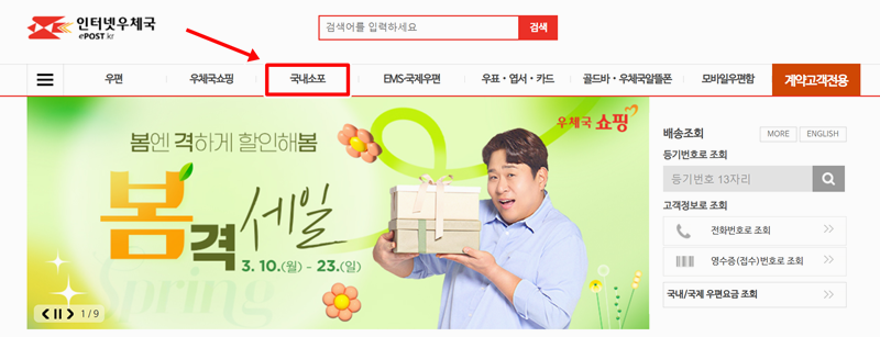 1. 소포 배송 조회, 우표 구매, 국제우편 접수 등 우체국 방문 없이도 필요한 업무를 처리할 수 있습니다. 우편물을 보낼 때나 받을 때 활용하면 시간과 노력을 줄일 수 있어 유용합니다. 메인화면에서 여러가지 메뉴가 보이는데 소포 택배 배송 조회를 하려면 국내소포 메뉴로 이동하면 됩니다.