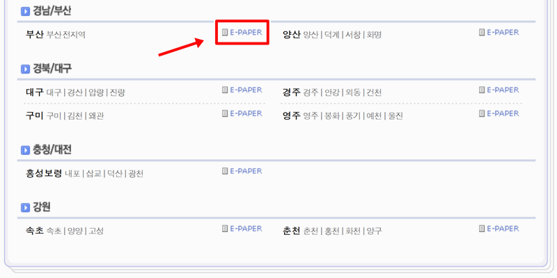 2 부산 벼룩시장 신문은 날짜별로 볼 수 있는데요. 최신 날짜부터 정리되어 있어 원하는 날짜의 신문을 쉽게 찾아볼 수 있어요. 그리고 E-PAPER 서비스에 대한 안내가 있어 이용하는 데 도움을 받을 수 있어요.