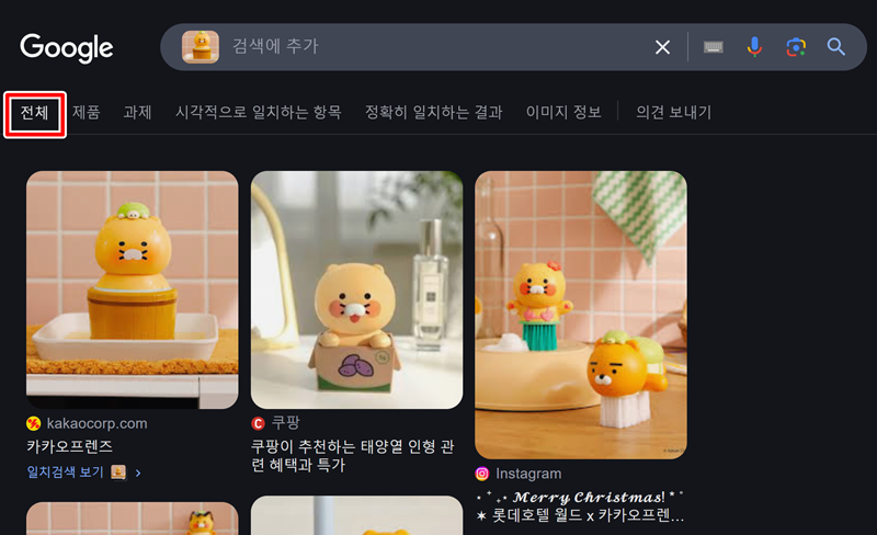 3. 이렇게 제품이나 상품을 업로드 하면 구글에서 이미지 검색 기능을 통해 어떤 상품인지 알아볼 수 있습니다. 예시로 카카오 인형을 검색해보았는데 정확한 검색결과를 보여줍니다.