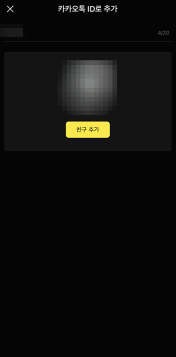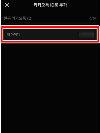 3. 아이디 검색창이 뜨면 원하는 친구의 카카오톡 아이디를 입력한 뒤 검색하면 해당 사용자의 프로필이 나타납니다. 하지만 우리는 내 아이디를 확인하는 것이 목적이므로 검색창 아래에 표시된 정보를 보면 됩니다. 본인의 아이디가 어떻게 설정되어 있는지 확인할 수 있으며, 이곳에서 바로 변경할 수도 있습니다.