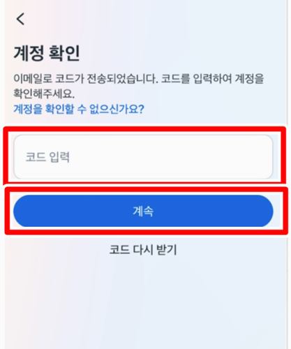 4. 계정 찾기를 완료하면 인증코드가 담긴 메시지가 오는데요. 그 코드를 입력란에 입력하고 '계속'을 눌러주면 됩니다. 만약 이메일에서 인증코드 대신 '비밀번호 재설정'이 있으면 그걸 눌러서 바로 비밀번호 재설정 페이지로 갈 수 있어요.