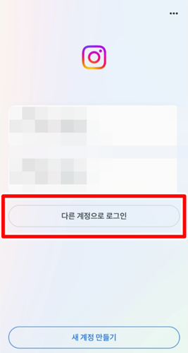 1. 인스타그램에 들어가면 로그인 화면이 나와요. 거기서 다른 계정으로 로그인을 누릅니다. 비밀번호를 찾고 재설정하는 과정으로 넘어가기 위한 첫 번째 단계에요.