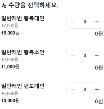 4. 예약을 위해서는 먼저 소인, 대인, 왕복, 편도 등 원하는 수량을 선택해야 하며 선택한 수량에 따른 요금이 함께 표시됩니다.