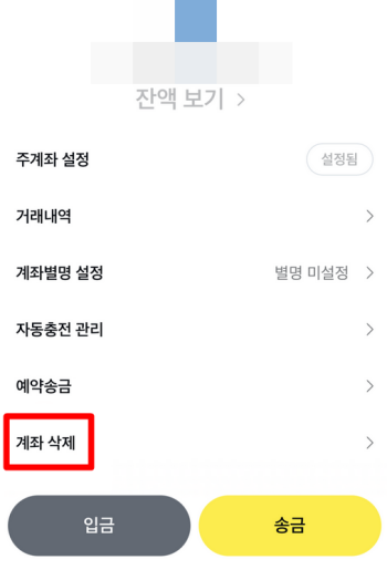 7. 이제 삭제할 계좌를 선택하고 '계좌 삭제'를 누르면 해당 계좌가 삭제됩니다. 그 후 새로운 계좌를 추가하면 계좌 변경이 완료돼요.