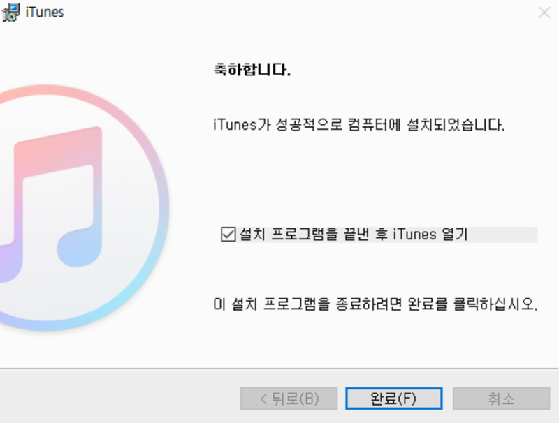 5. 설치가 끝나면 보통 2~3분 정도 걸립니다. 완료 후에는 아이튠즈가 자동으로 실행되도록 설정이 되어 있어요. 이때 추가 설정을 따로 하지 않아도 바로 사용할 준비가 된 거죠.