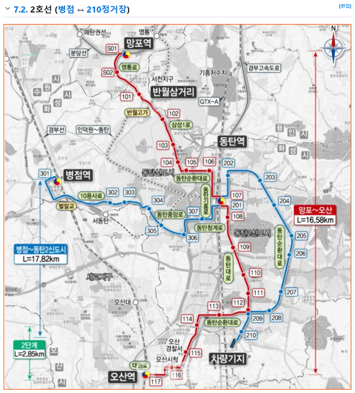 동탄 트램 노선도 정류장