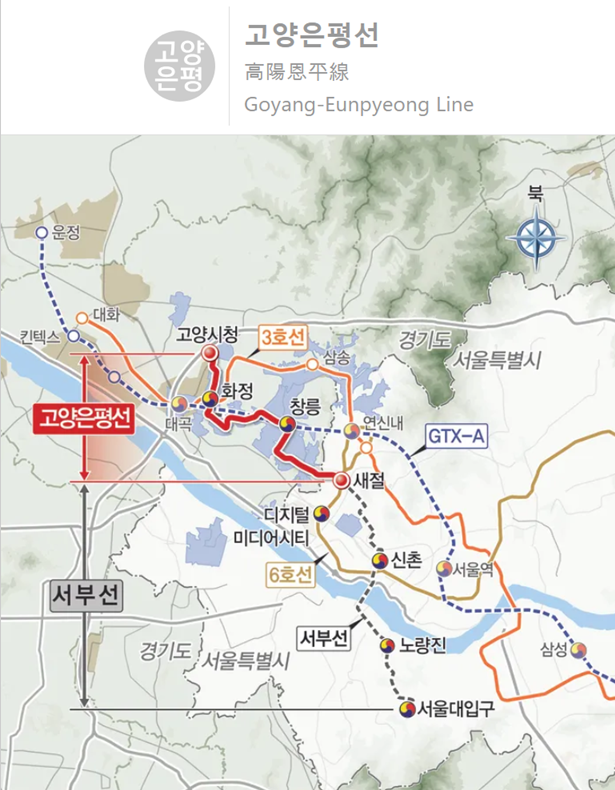낯선 철도 계획을 처음 접하면 어디에 정거장이 들어설지 가장 먼저 눈길이 가기 마련이죠. 고양 은평선의 전체적인 밑그림을 빨간 선으로 선명하게 확인할 수 있어요. 고양시청 인근에서 시작해 창릉을 거쳐 새절역까지 이어지는 경로가 서울의 서부선과 하나로 연결되는 모습을 보니 수도권 남북을 잇는 거대한 동맥이 탄생한다는 사실을 금방 알 수 있습니다.