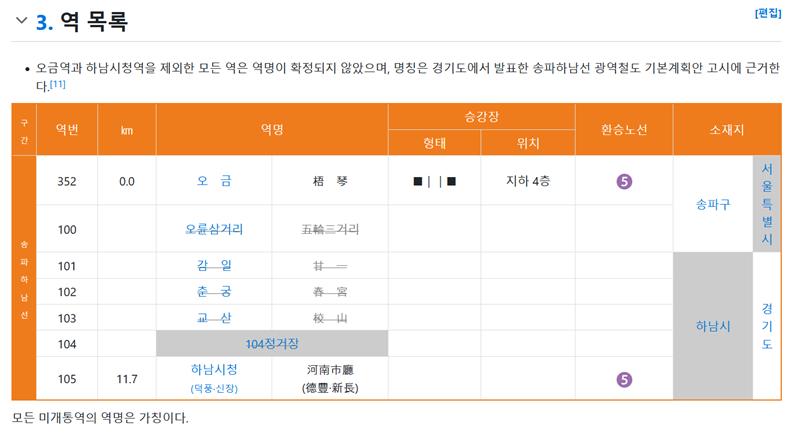 내가 실제로 발을 내딛게 될 정거장 이름들을 하나씩 살펴보면 앞으로의 일상이 더 구체적으로 그려질 거예요. 오금역을 시작으로 오륜 삼거리와 감일 지구를 지나 춘궁과 교산 신도시 그리고 하남시청역까지 이어지는 경로가 계획되어 있어요. 각 지점마다 어떤 노선으로 갈아탈 수 있는지 번호가 매겨져 있고 어느 동네에 정거장이 들어서는지 소재지 정보까지 상세히 나와 있어 이동 동선을 미리 짜보기 좋아요.